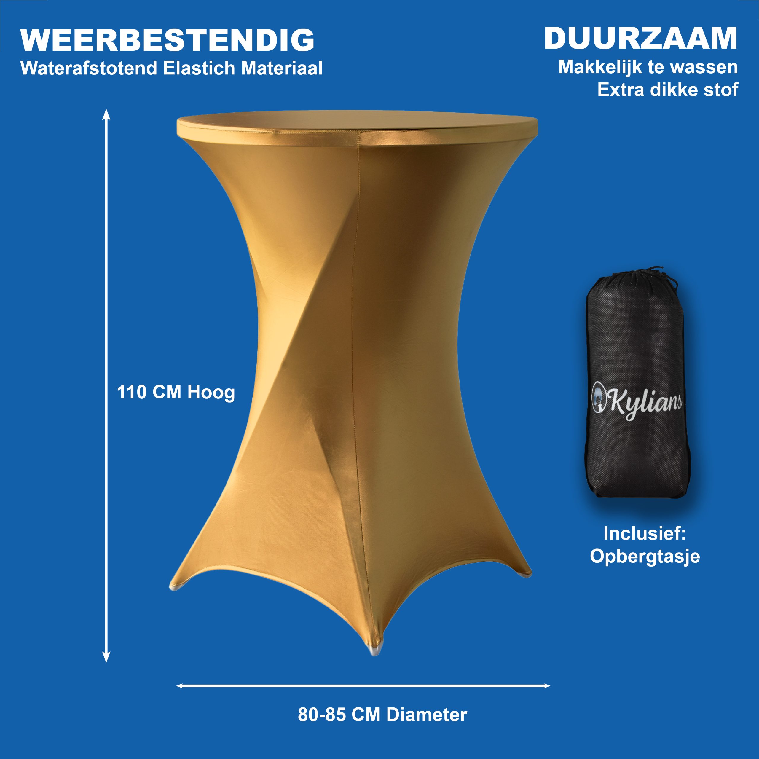 Gouden Statafelrok van Kylians – ∅ 80-85 x 110 cm met Opbergzak – Premium Stretch, Kras- en Kreukvrij